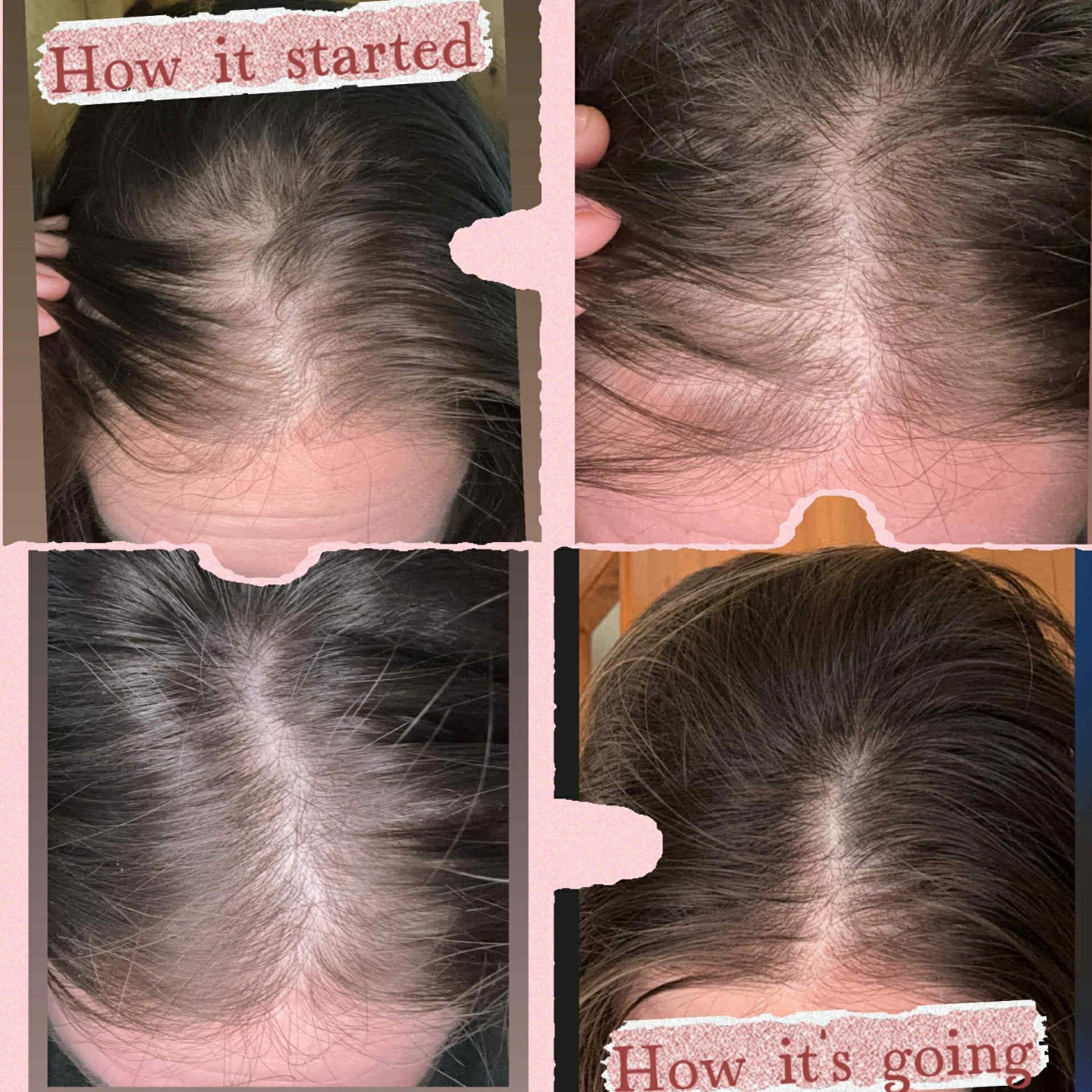 I do feel my hair a lot more thicker. I can tell because the texture is just different. I used to cover my hair with tinted dry shampoo a lot... Maybe about two months ago I stopped using it and I feel so much more secure... I like to do my hair now!